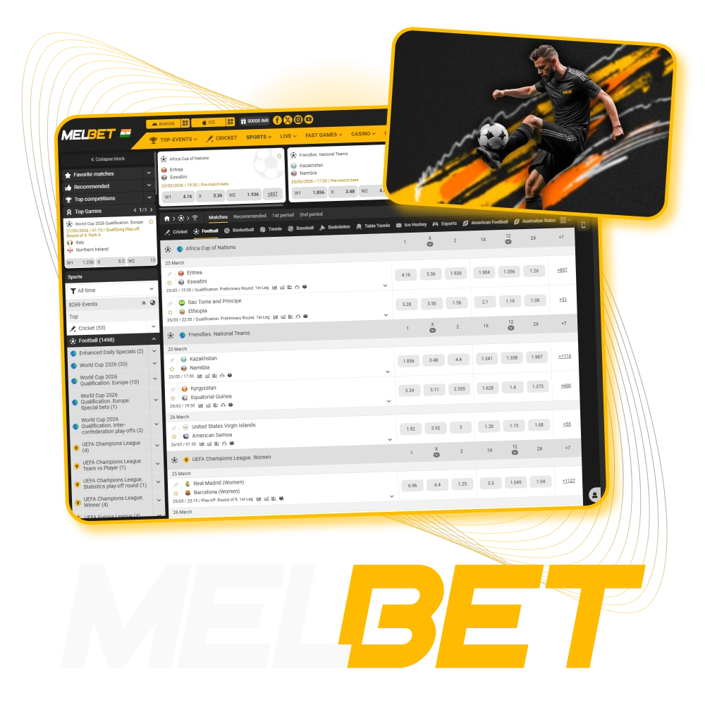 Place bets on football matches at Melbet sportsbook.